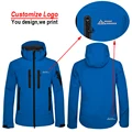 Custom Print Winter Thermal Fleece Hooded Softshell Jacket Men Waterproof Windproof Hiking Clothing Skiing Hunting Fishing Coat
