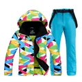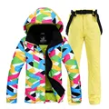 Cheap colorful Female Snow Suit Set Womens Snowboarding Clothing winter Outdoor Sports Waterproof Ski jackets + Snow belt pants