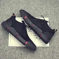 New Hot sale fashion male casual shoes all Black Men's leather casual Sneakers fashion Black white flats shoes LH-57