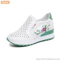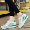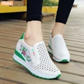 Discount Offer Casual High Heels Loafers Breathable Vulcanize Women Sneakers PU Round Toe Embroider Platform Wedge with Free Shipping Worldwide!