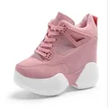 Hot Sale 2018 High Heel Wedges Platform Sneakers 11CM Height Increasing Women Pu Leather Shoes Comfortable Casual Woman Shoes
