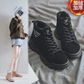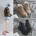 Thick Sole Heels Chunky Sneakers 2019 Autumn Ankle Boots for Women Shoes Woman New Lace Up Canvas Casual Martin Boots Plus Size