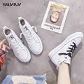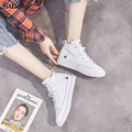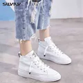 SWYIVY Leather Casual Shoes Women Sneakers Ladies Spring 2020 Ins New High Top White Shoes Woman Chunky Sneakers Fashion Flat