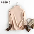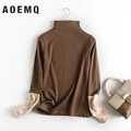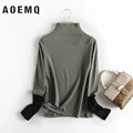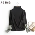 AOEMQ Fashion Pullovers Winter Sweaters 4 Colors Patchwork Button Decoration TopsTurtleneck Collar Sweaters Women Clothing
