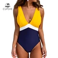 Discount Offer CUPSHE Yellow Blue Colorblocked Open Back One-Piece Swimsuit Sexy V-neck Women Monokini 2020 Girl B with FREE Shipping Worldwide!