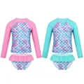 TiaoBug Baby Girls Long Sleeves Mermaid Fish Scales Pattern Printed Rash Guard Swimsuit Children Toddler Swimwear Bathing Suits